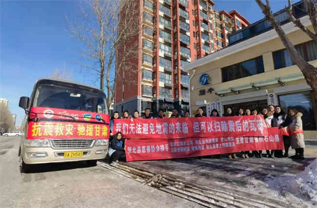 12月22日下午2點(diǎn),張家口勤豐公司董事長(zhǎng)帶領(lǐng)公司員工、慈善協(xié)會(huì)志愿者一行十人,從張北到災(zāi)區(qū)吃住都在車上,安全抵達(dá)甘肅省臨夏市積石山縣后,配合臨夏市慈善協(xié)會(huì),將物資捐贈(zèng)至積石山縣吹麻灘鎮(zhèn)人民政府。